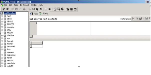 Mysql Front is a client for Windows that allows for the management to manage a local or remote DB through a client interface. Since we consider PHP-Nuke to be more aproppriate and flexible tool for this task, we would like to focus our attention a little on a functionality of MySQLFront that on PHPMyAdmin has shown itself to be little reliable. That is the ability to load, import and export DBs of great dimensions without losing data or getting errors.
