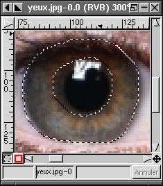 Om de kleur van de ogen te veranderen moeten we gebruik maken van een wazige selectie. Dat is nodig omdat er geen precieze grenzen zijn tussen de verschillende elementen van een oog.