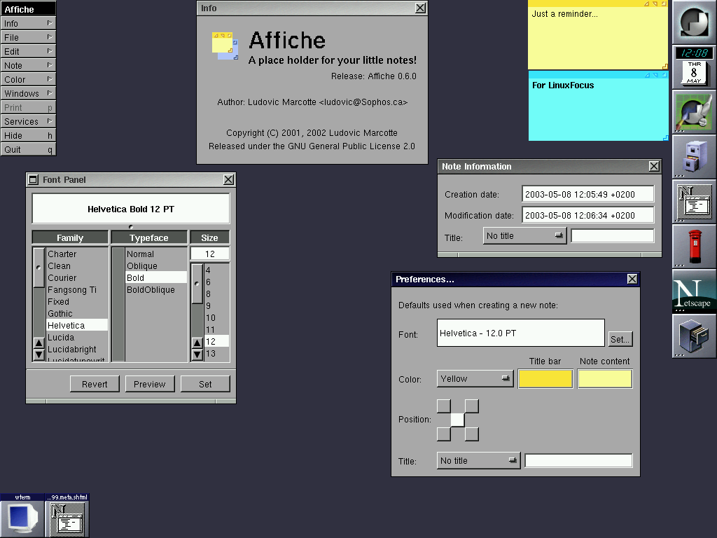 Como el archivo README (LEAME) lo dice, Affiche es una pequeña aplicación que permite adherir notas en el escritorio. Para aquellos que conocen Mac OS X, es un poco parecido a la aplicación "Stickies". Podemos decir, es el equivalente de una "Nota adherente", sin el adhesivo.