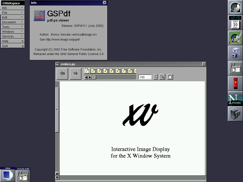 Como su nombre lo indica, GSPdf es un visor de PDFs. Naturalmente, puede desplegar también archivos PS, dado que trabaja como un manejador para Ghostscript (y ha sido probado con Ghostscript 7.05).