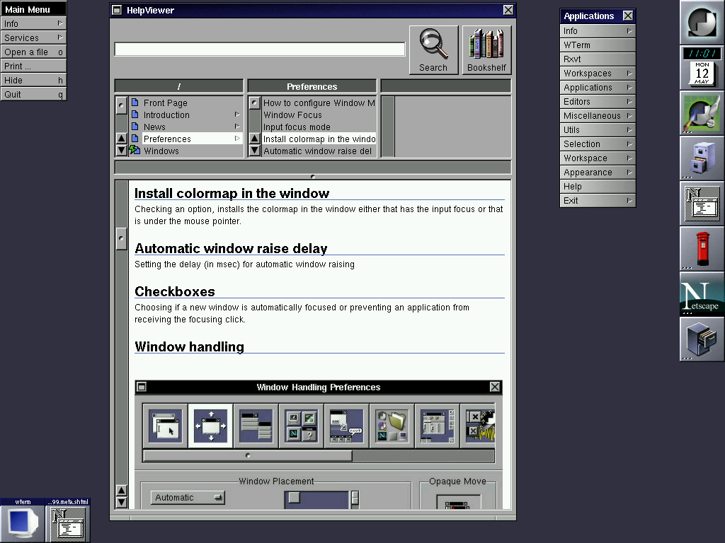 Aqui mostramos una captura de pantalla de la guided tour (excursión guiada) en Window Maker, iniciada desde el menú de la aplicación :