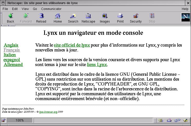 <P>Lynx est distribué dans le cadre de la lisence GNU