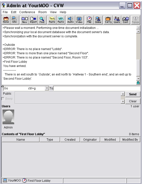 Tout est prêt pour le premier accès au server CVW. Lors de la première connexion, il faut utiliser le compte "Admin" sans mot de passe.